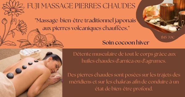>> DISPONIBILITE EGALEMENT « FUJI MASSAGE AU PIERRE CHAUDE » AVEC SANDRINE <<